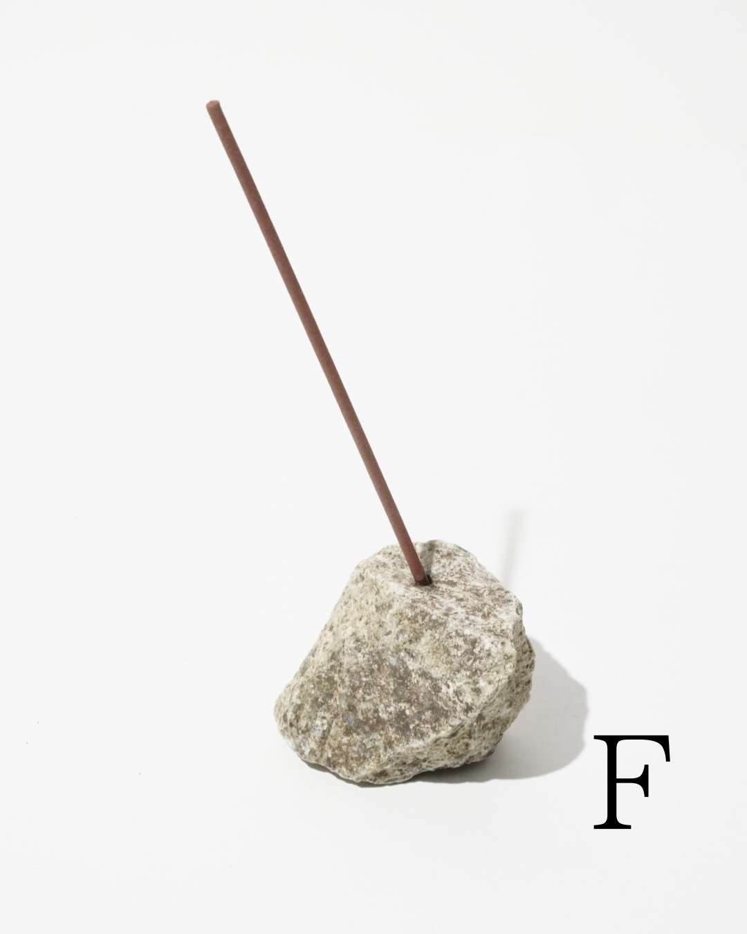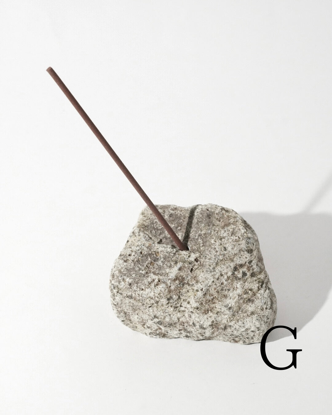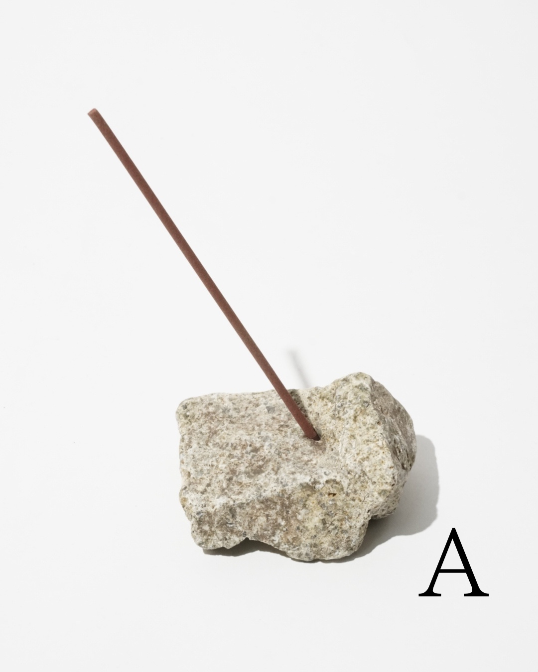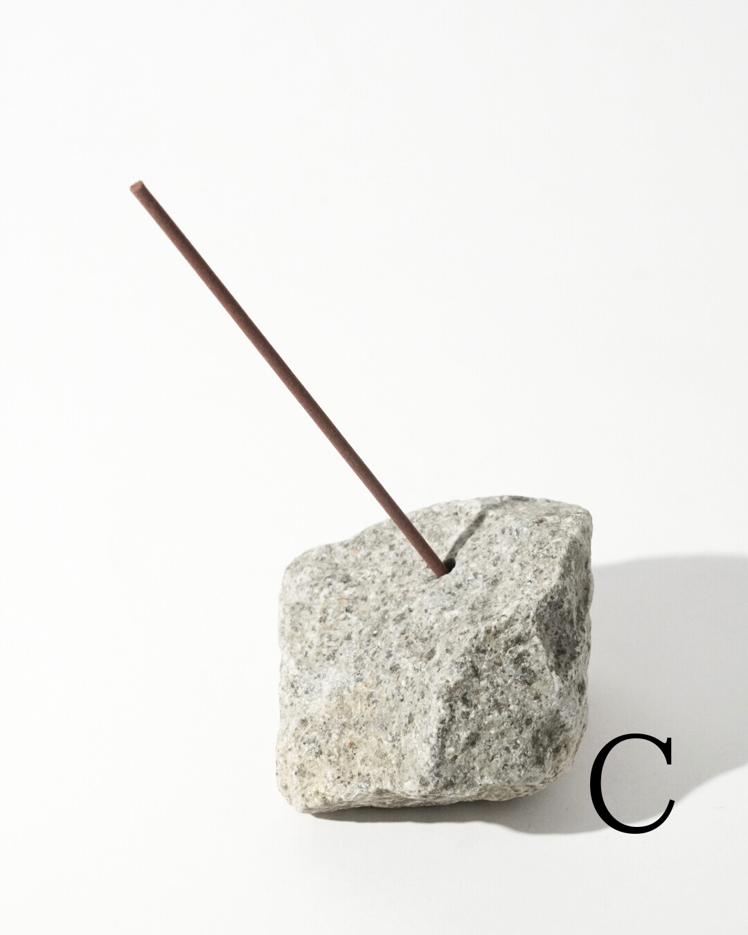 川辺や山の中でふと出会ったような、素朴で力強い花崗岩。その石にひとつだけ穴をあけて、お香をそっと立てられるようにしました。