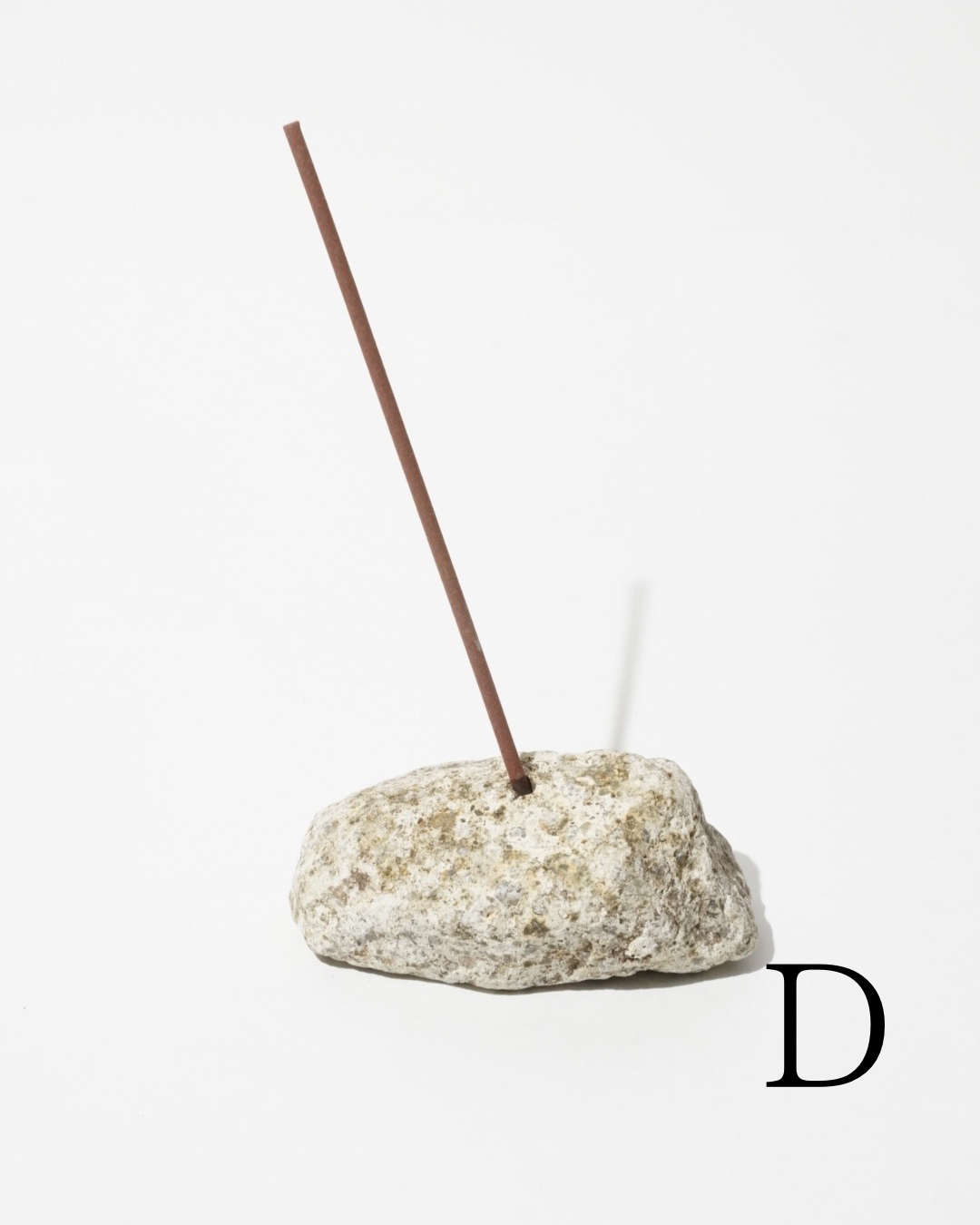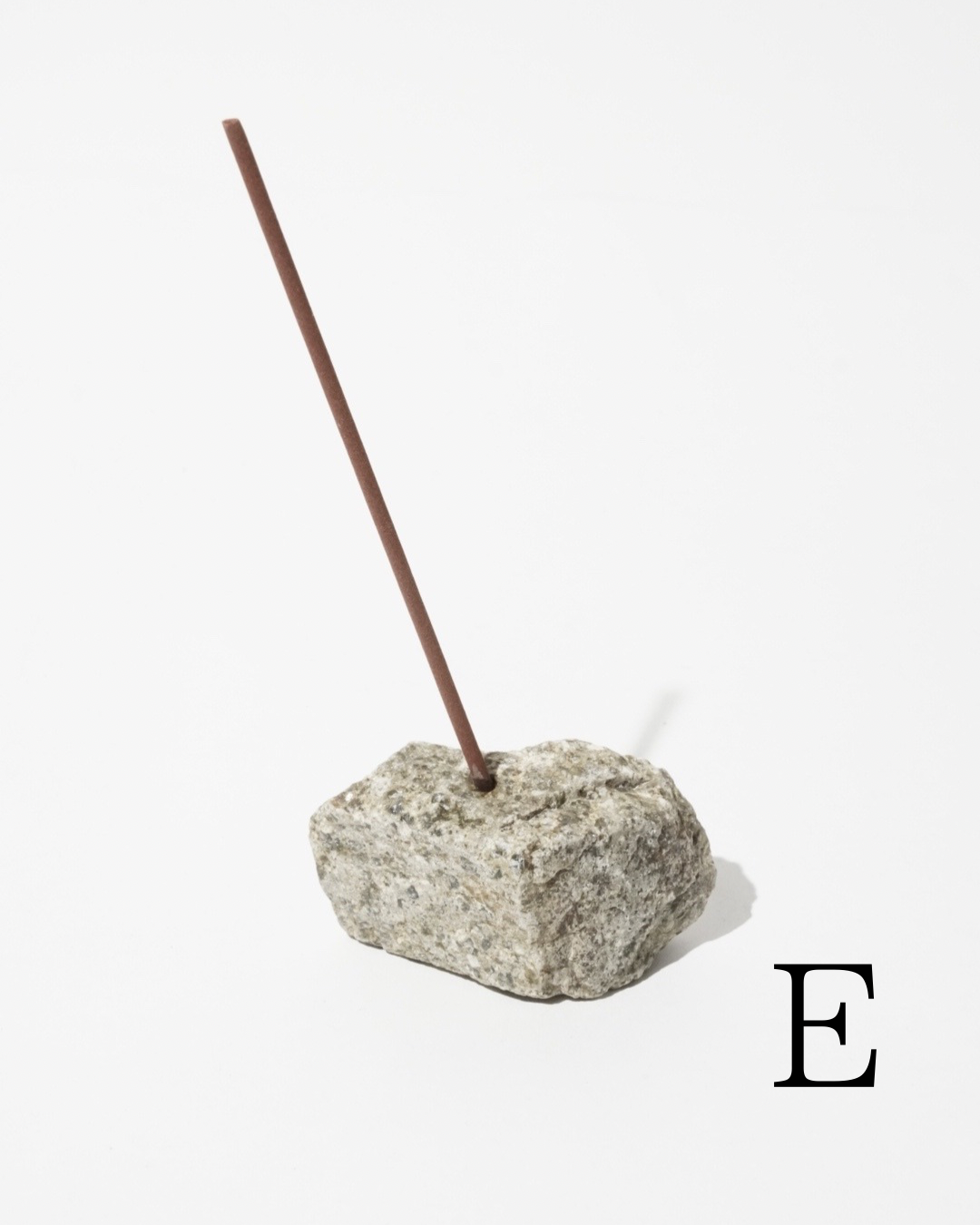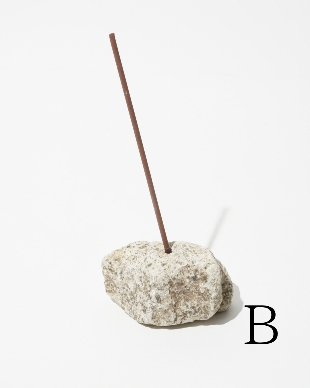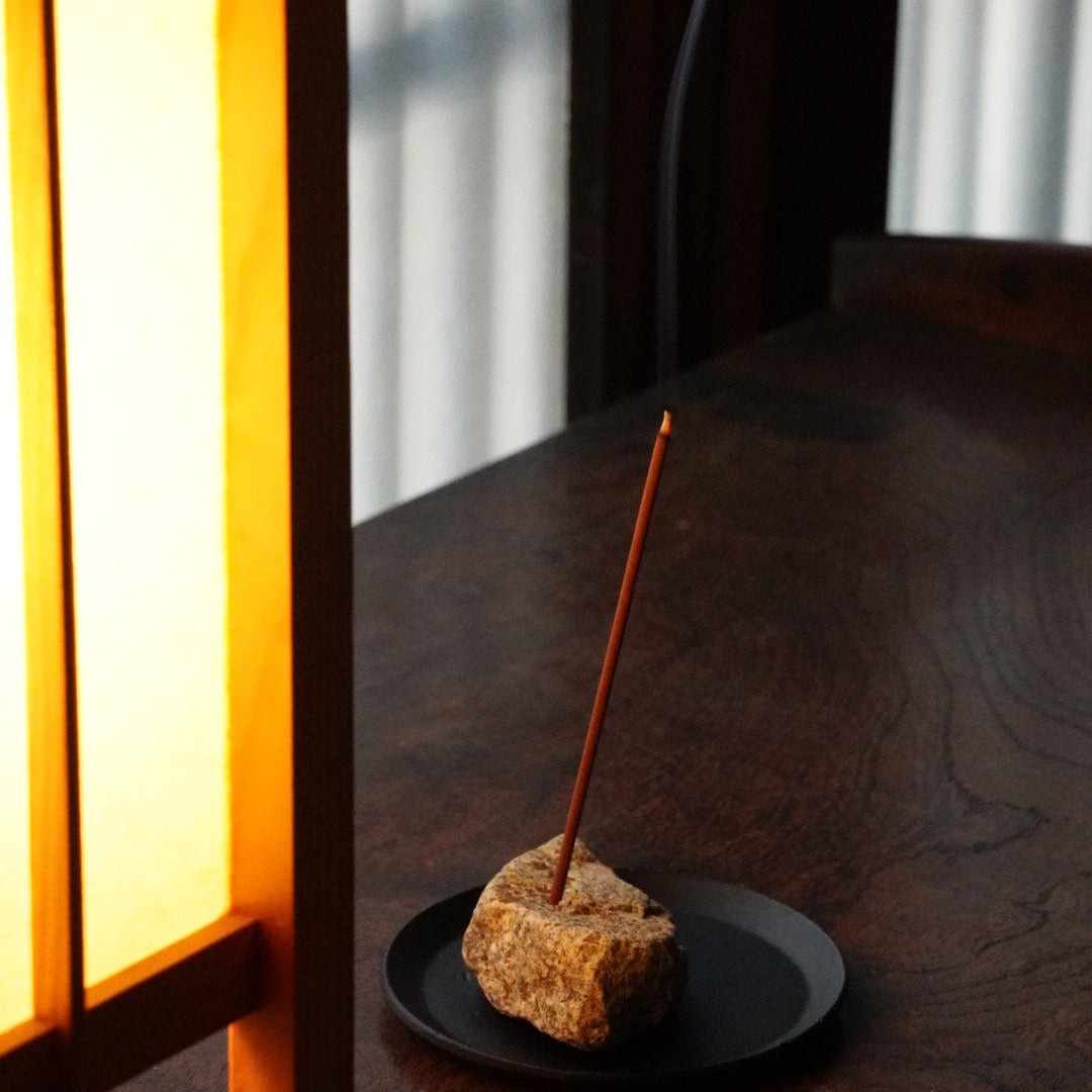 川辺や山の中でふと出会ったような、素朴で力強い花崗岩。その石にひとつだけ穴をあけて、お香をそっと立てられるようにしました。